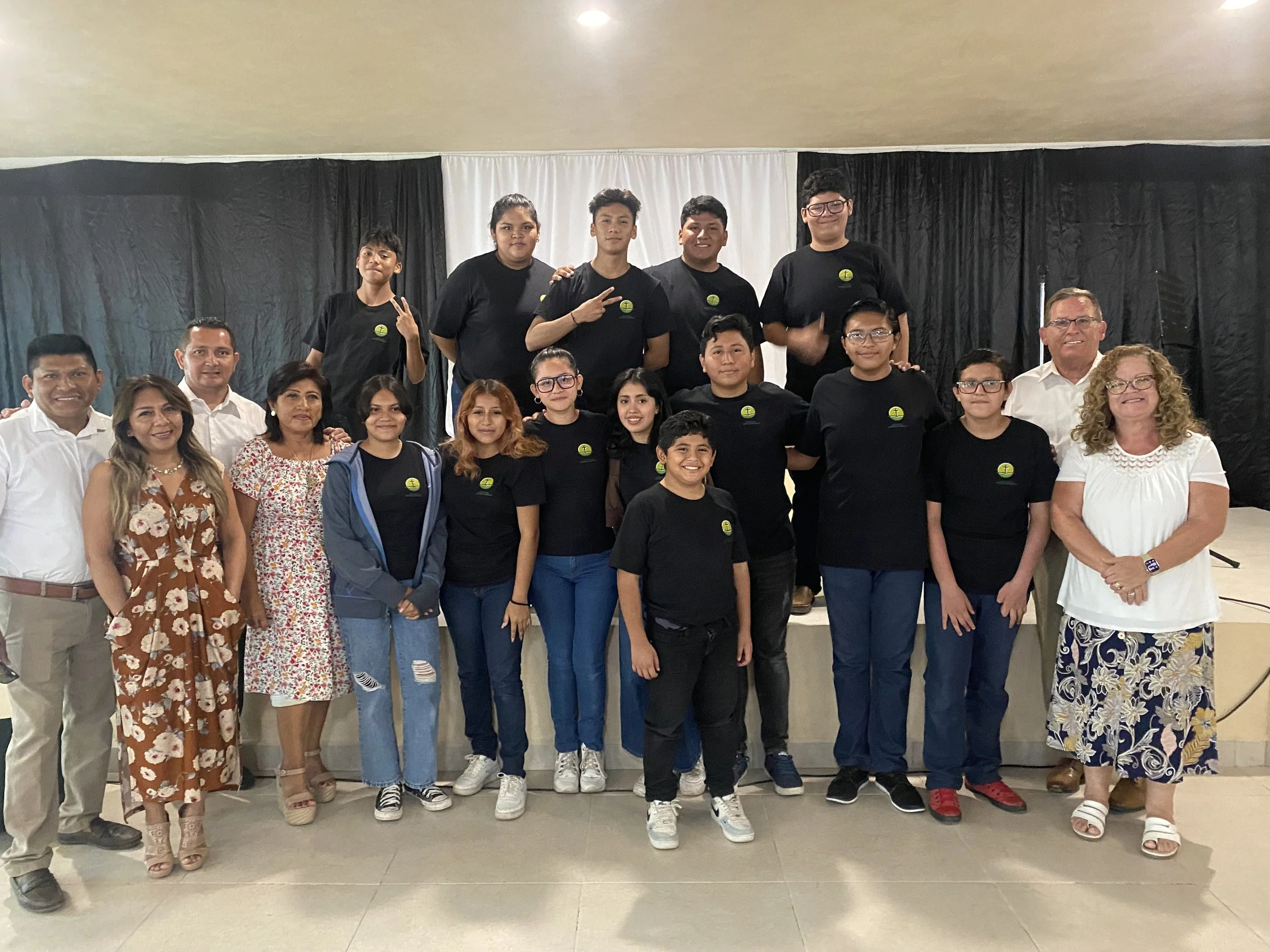 Nuestra reunión incluye un grupo para adolescentes de 12-14 años, y un grupo aparte de 15-19 años. Se combinan para el tiempo de alabanza y juegos pero cada grupo tiene su propio devocional.
